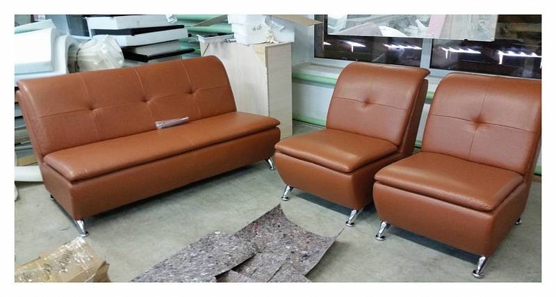 Каркас спинки и сиденья: ДВП, влагостойкая ДСП, фанера, пиломатериалы хвойных пород, пенополиуретан, синтепон.