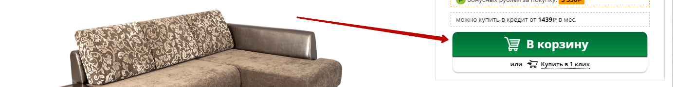 1. Выбрать понравившийся товар и нажать кнопку "В корзину"