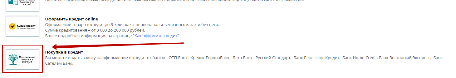 3. При выборе платежной системы, выберите "Покупка в кредит".